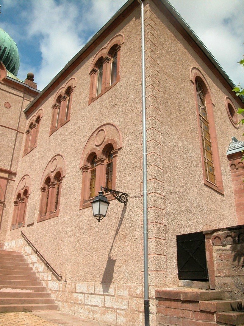 Restauration des façades et toitures de l’ancienne synagogue. . Très dégradée par suite de saccages pendant les guerres et ensuite à l’abandon, l’édifice, construit en 1822 et remanié en 1903 pour en faire une synagogue avec un grand bulbe caractéristique, retrouve grâce à des travaux bien conçus et réalisés un aspect digne de son origine.